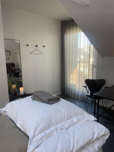 Det er sjældent, klienterne når at møde hinanden i døren i Christinas klinik, Flow Akupunktur, hvor der er sat tid af til, at klienten kan have sit eget rum. Der er forberedt en bakke med lidt at spise, en urtete og noget tempereret vand, så man lander rigtig godt og rart, og kan sænke skuldrene. Ønsket om at skabe en klinik med plads til ro og tid til den enkelte, springer dels ud fra et ønske om at fjerne sig fra det hurtige, det progressive og det, der hele tiden skal forandre sig, dels ud fra et ønske om at skabe et miljø, der både danner de optimale rammer for den givende behandling og det nærende arbejdsmiljø.